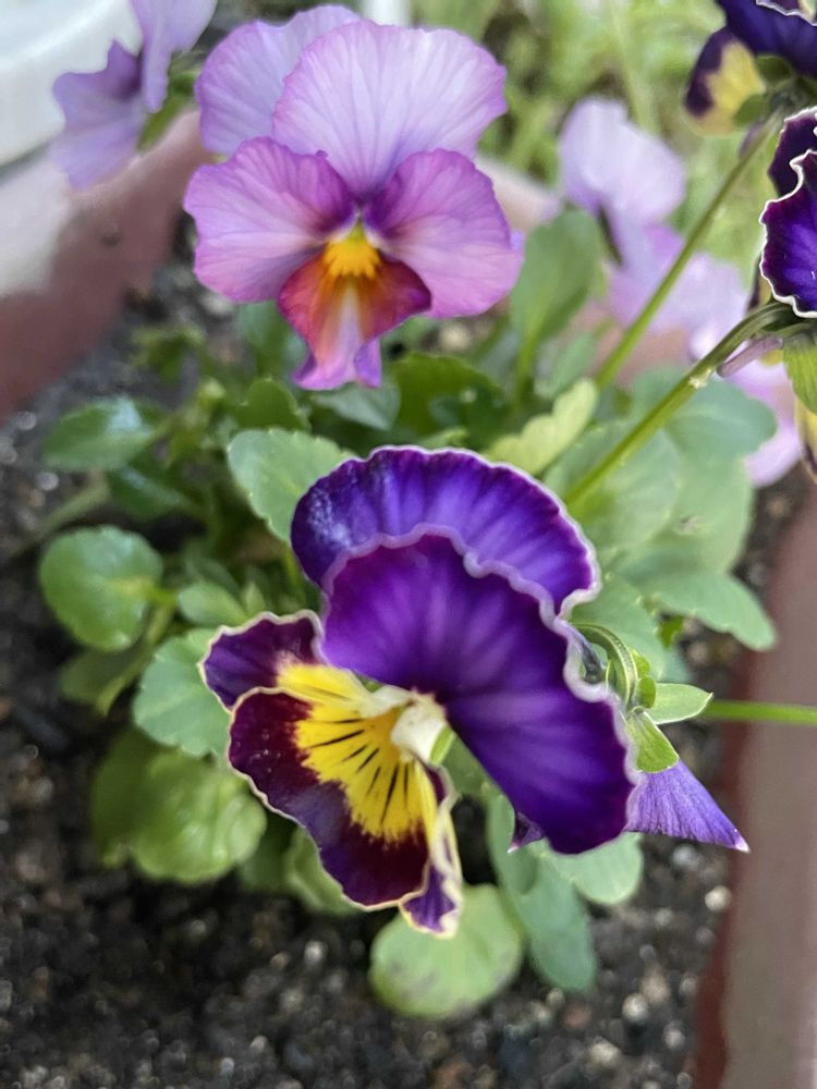 今年の6分の3株目🤗06.12/1のビオラ🤗同じ株で違う種類咲いてるのが良くて即購入〜😄