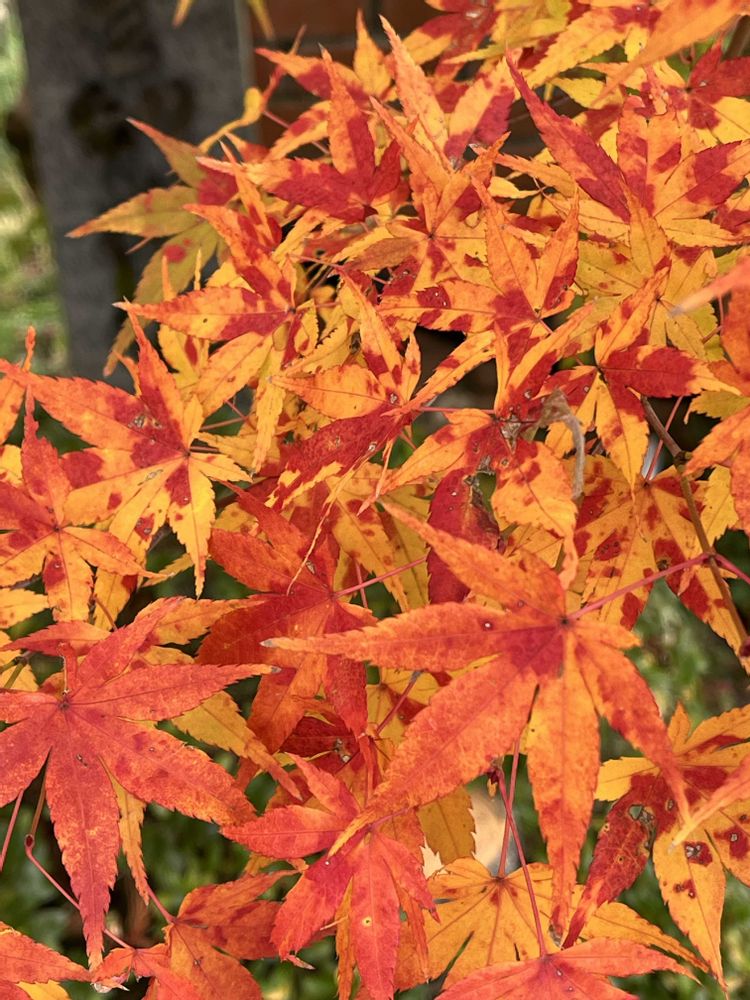 オレンジに赤い模様のカエデたち