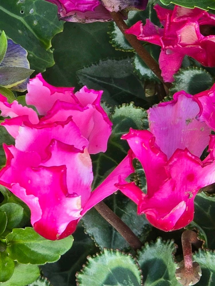 いつものビル地下のポインセチアと一緒に飾られたシクラメン💕