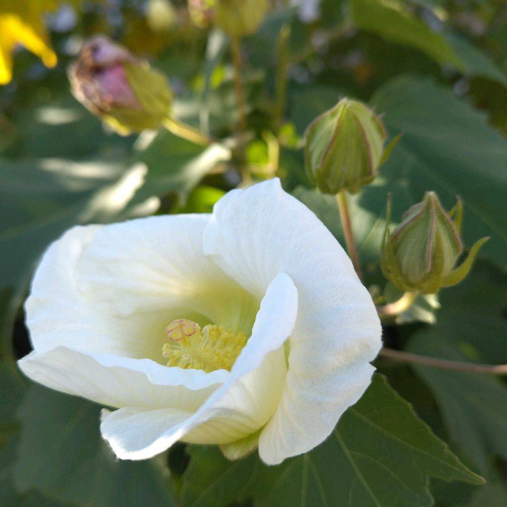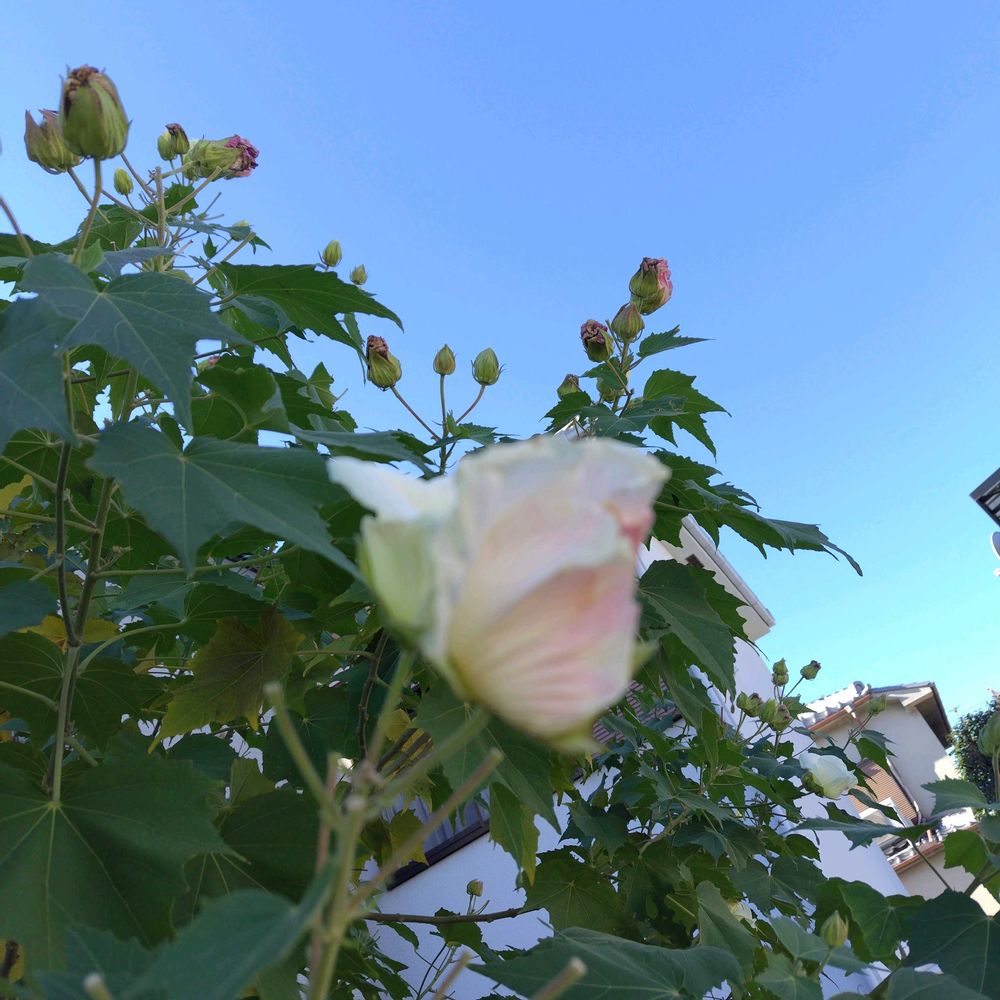 酔芙蓉♡朝…まだ純白のシラフの花で…🤍🌿💁🏻♀️😉👍🏻✨🤍🌿✨4️⃣5️⃣