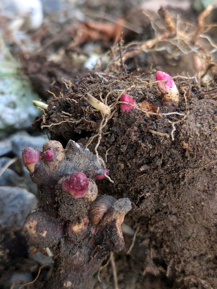 なんか景観ブッ壊すひょろ長い枝が生えてたから引っこ抜いたら、根元というか土の中で次に出る予定だったヤツら?がいたので撮ったやつ