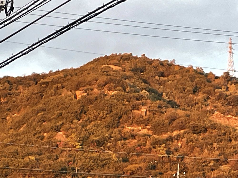 その散歩途中 夕日に照らされて紅葉した山🍁 (16:46撮影)がめちゃくちゃきれいでした👏