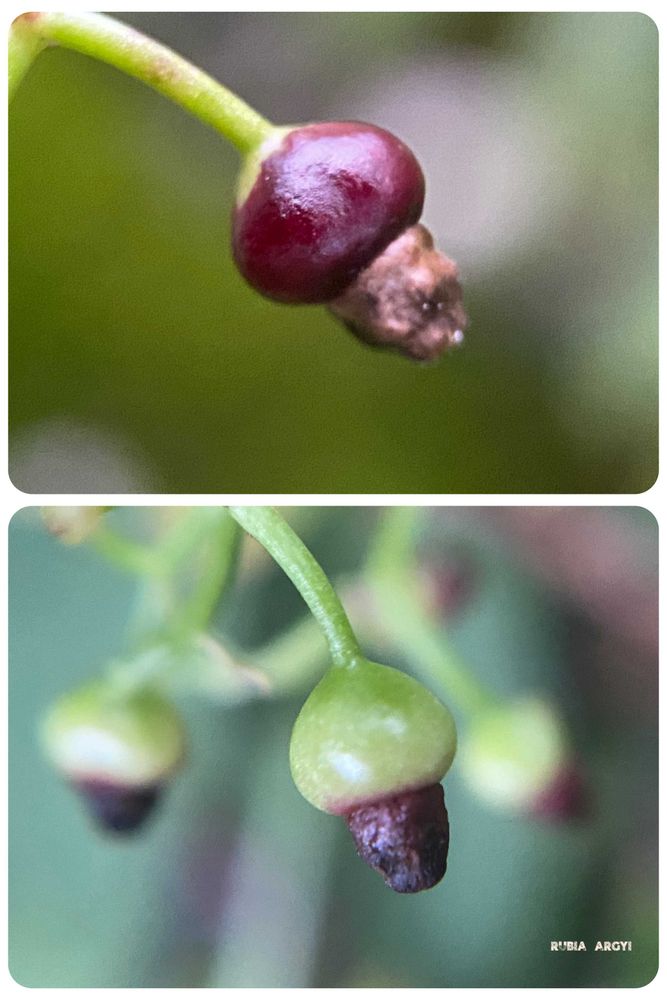 △ 緑色から真っ赤に熟す。とよくいわれるがその続きがあって、その後は茶色く完熟する。自然界ではきれいな球形になっていないものも多く、赤くて綺麗なぼんぼん状態を見るのは意外と難しい。との事。