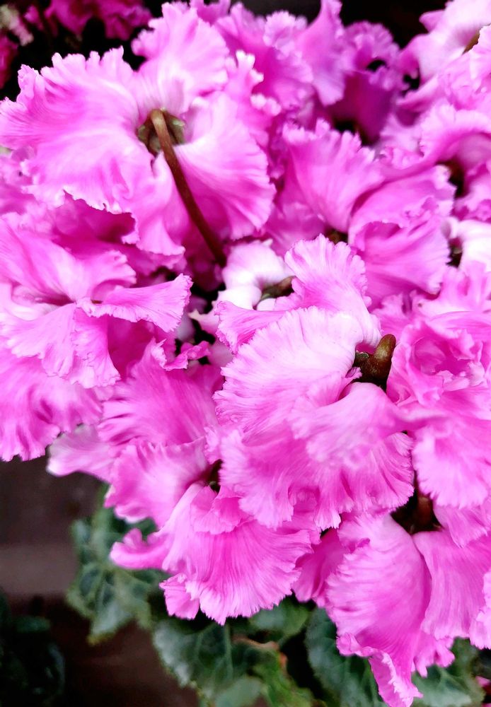 ピンク色のフリル咲きシクラメンが咲いていました🪷