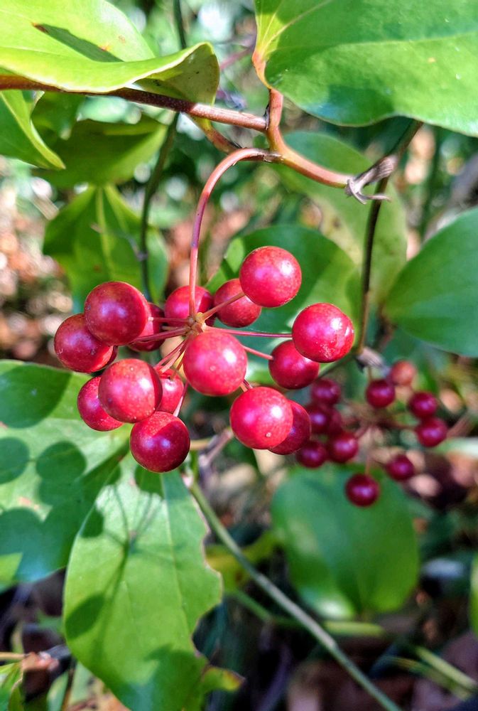 赤いサルトリイバラの実が可愛いです🔴🌿