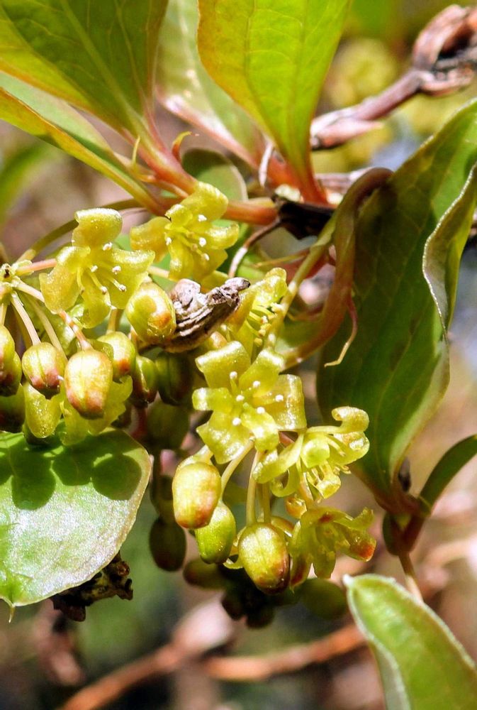 雄花の方が先に咲いて、雌花は後から咲きます、サルトリイバラの花は小さいので、撮るのが難しいです😂