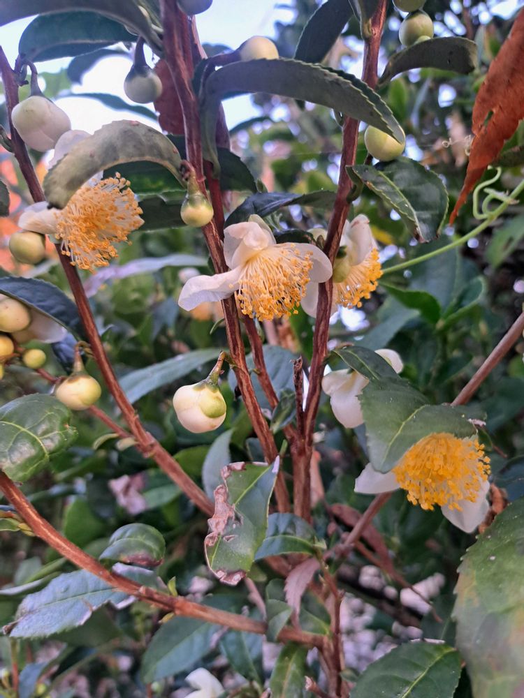 お茶の花がたくさん咲いてます