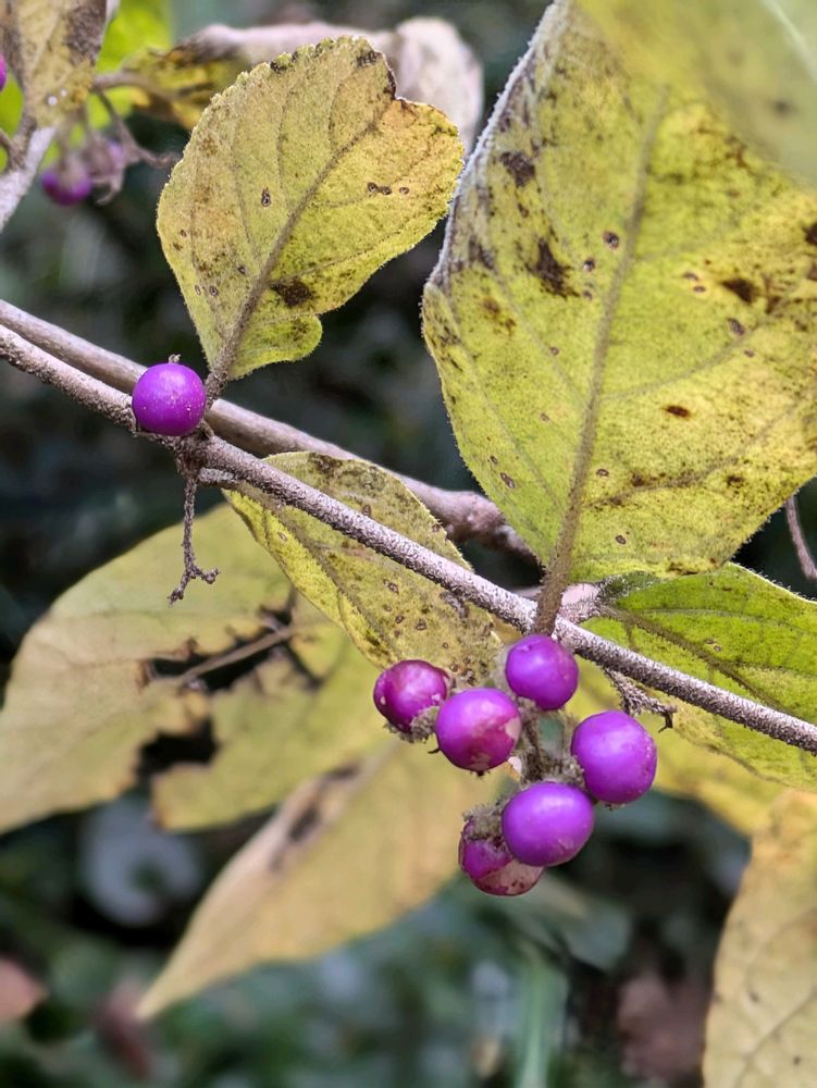 枯れつつある枝に紫色の実がまだ頑張って付いていました🤗