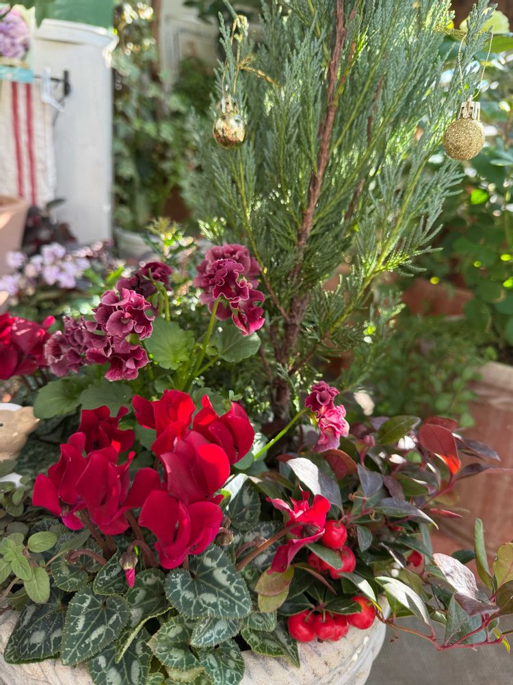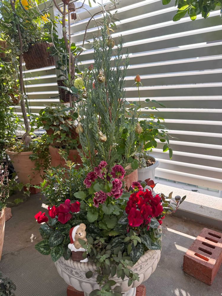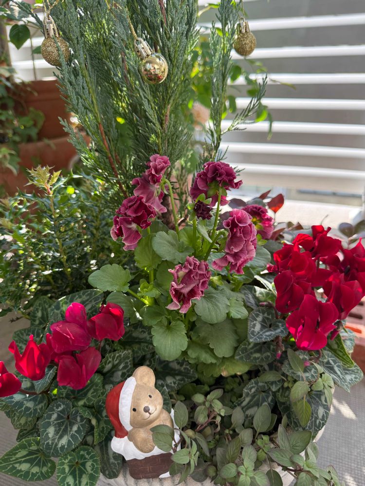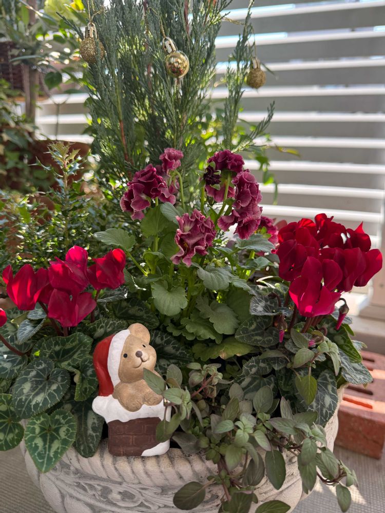 ローブドアントワネットを主役にしたくて、クリスマス🎄仕様に寄せ植えを作り替えました✨