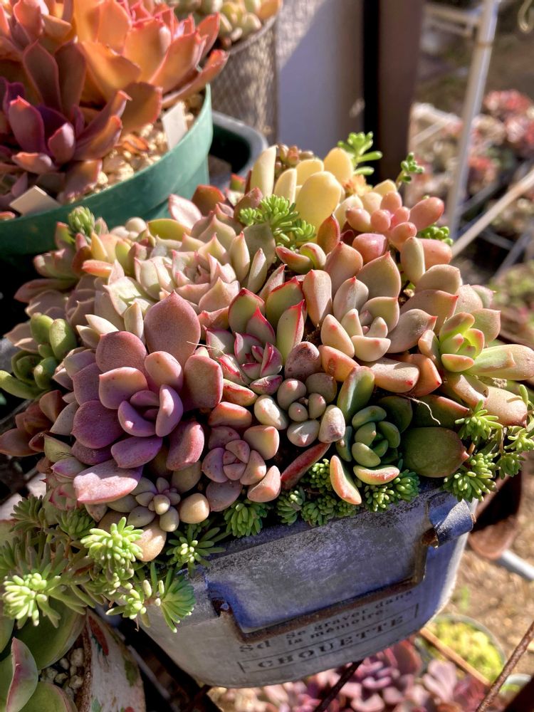 以前ノンちゃんから頂いたブリキ缶 その寄せ植えを解体して寄せ直しました🌸