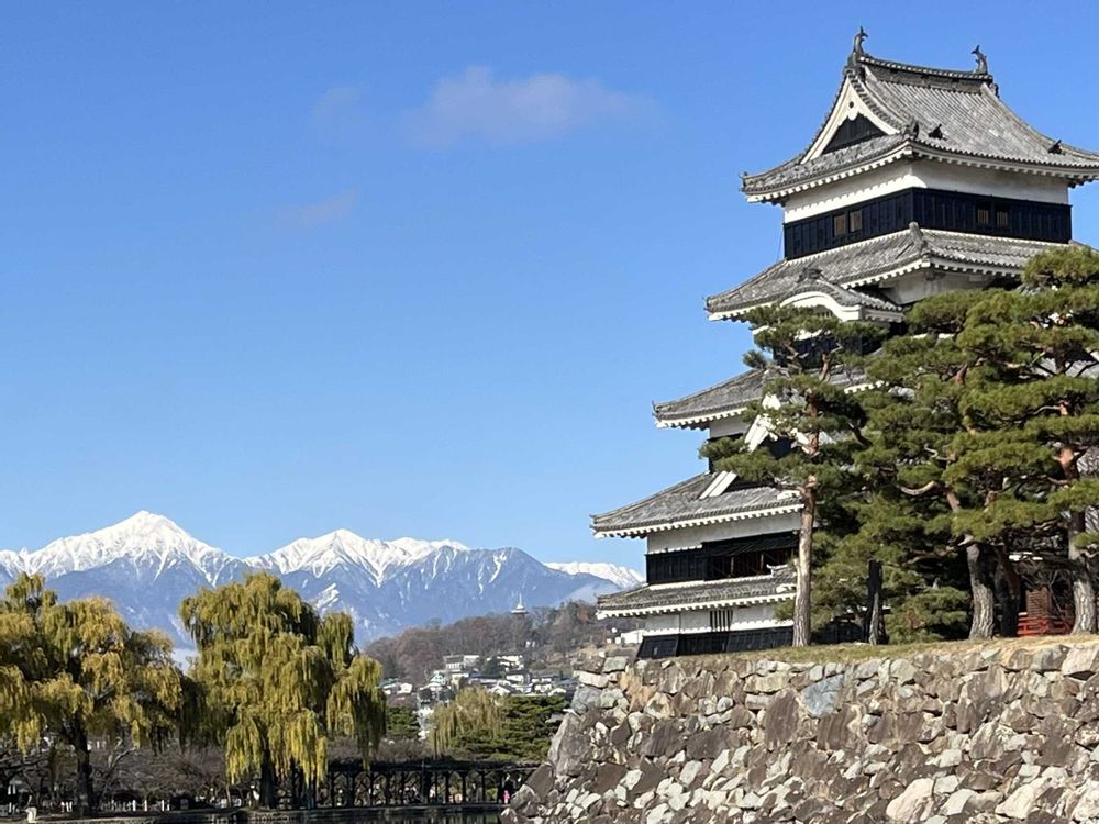 天守と冠雪した山々を見ると嬉しくなります✌️