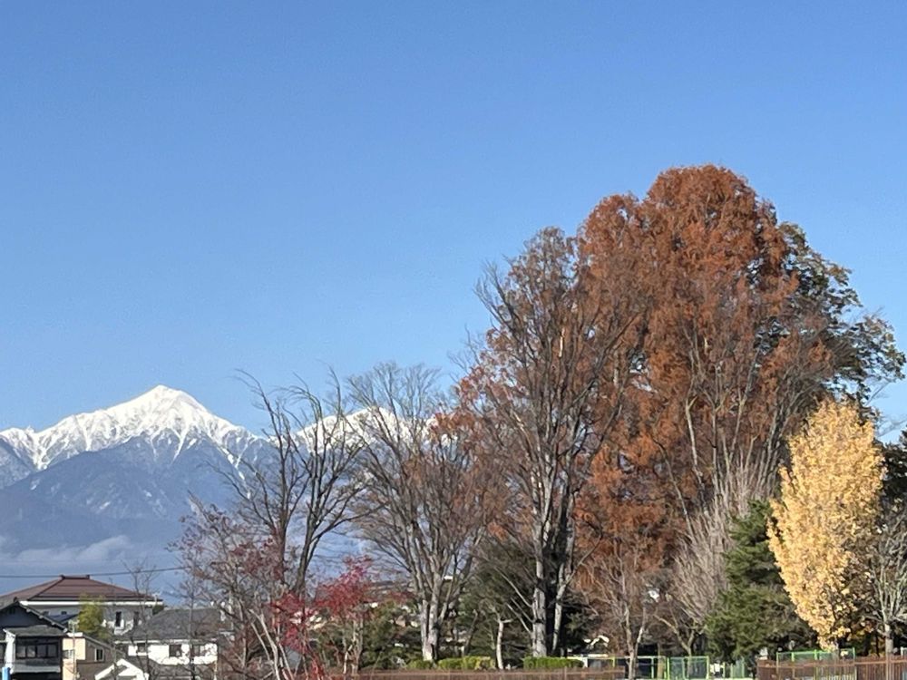 メタセコイアの紅葉と冠雪の常念岳のコラボはじめてです🤷♂️
