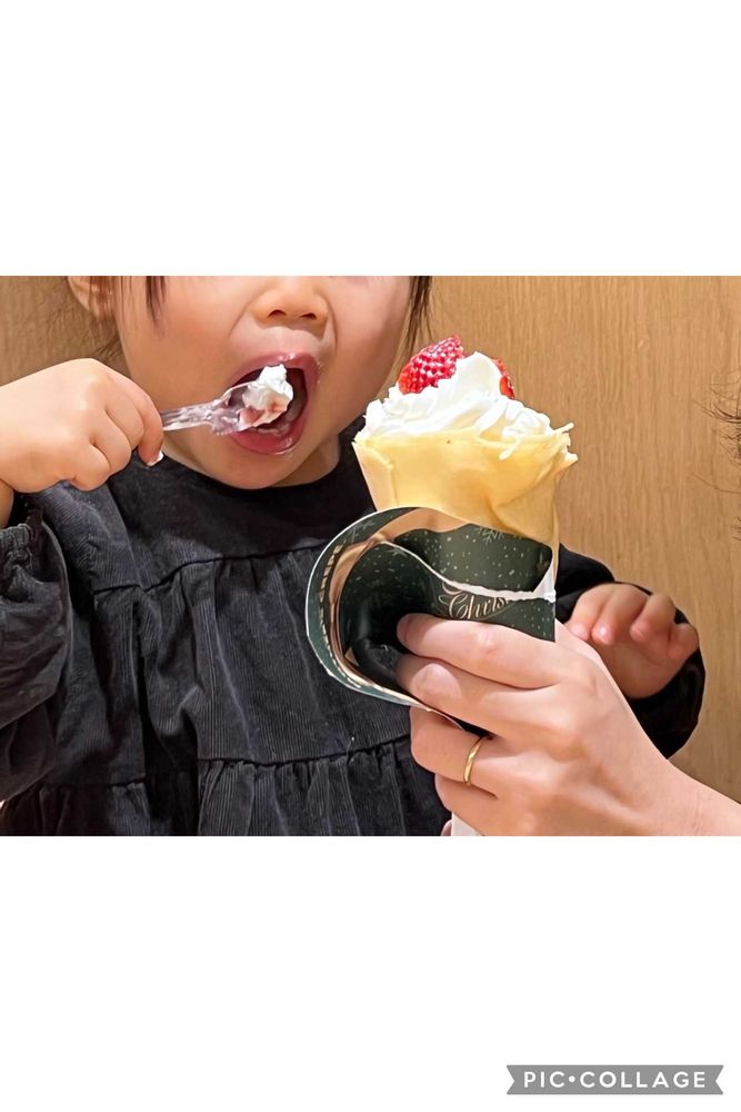 初めてのクレープにママの分がなくなる勢いで食べてました😋