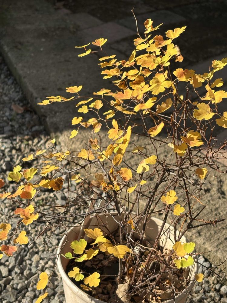 コデマリ(小手毬)に似た可愛らしい小花を咲かせる落葉低木です。 葉先が三つにわかれていることから三ツ手岩傘と呼ばれます。 秋に紅葉も楽しめます。 葉っぱもお花もとても可愛らしく、コデマリよりも繊細な印象で、盆栽としても楽しまれています。