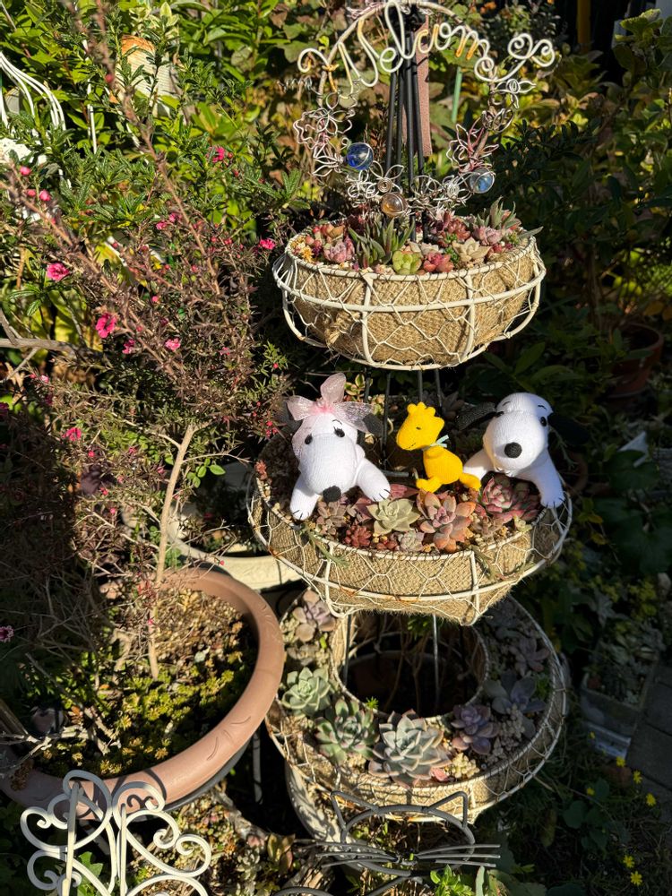①多肉タワーと🧦スヌーピー&ベル&ウッドストック