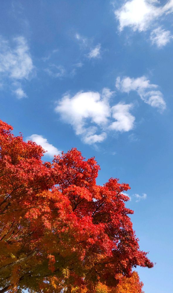 青い空と真っ赤に色付いた紅葉 素敵です。