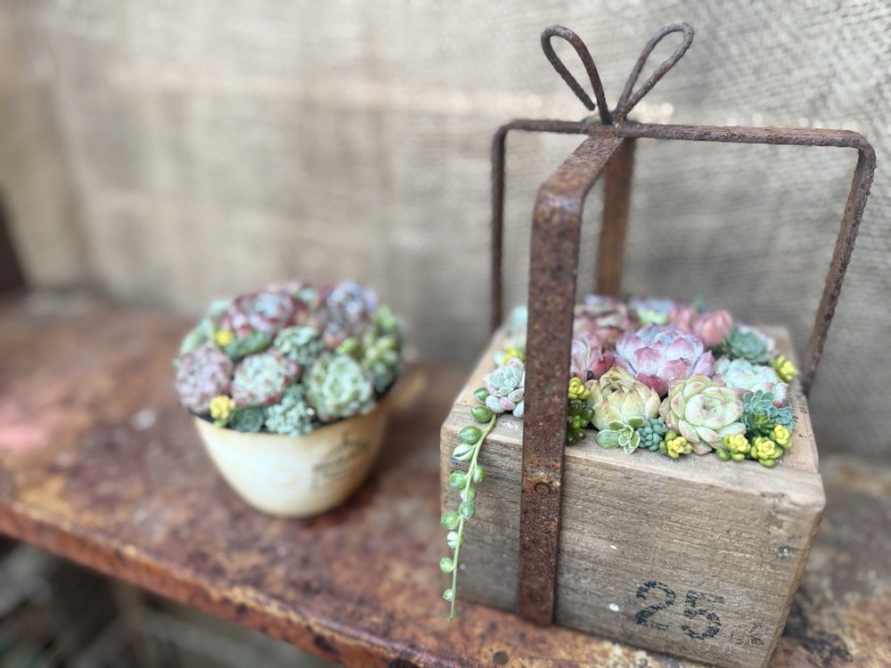木箱の鉢がまたオシャレで寄せ植えが映えますね(´。✪ω✪。`)ワァァ!!❤