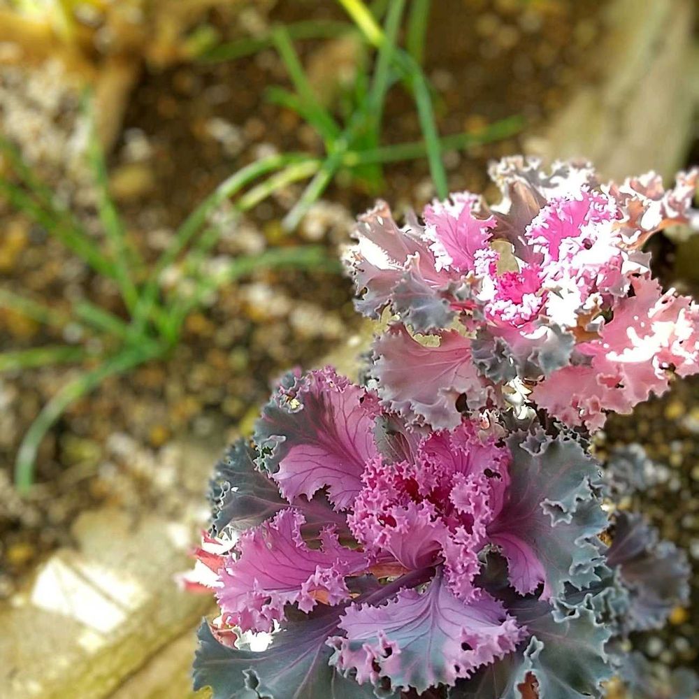 葉牡丹にこんなにフリフリした品種があるんですね😳しかも夏越しして放置してこんなに綺麗😍💕