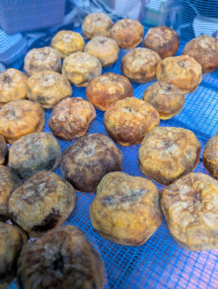 カメムシ多発で安売りをGET皮を剥いてエアコンで部屋干し小粒だから種も無く柔らかくなった物から口の中へ干し柿は残りそうにない〜