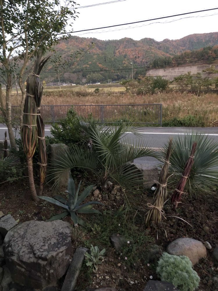 たぶんしなくても枯れはしないと思うんですが、雪も降るのでかなりダメージが出ると思うので毎年の恒例です