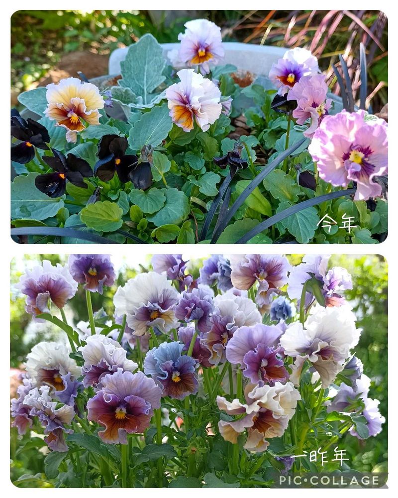 ①⬆今年作った寄せ植えです。ブラックビオラ、白妙菊、黒竜が入ってます。まだ株が小さいので大きくなるのが楽しみです☺️