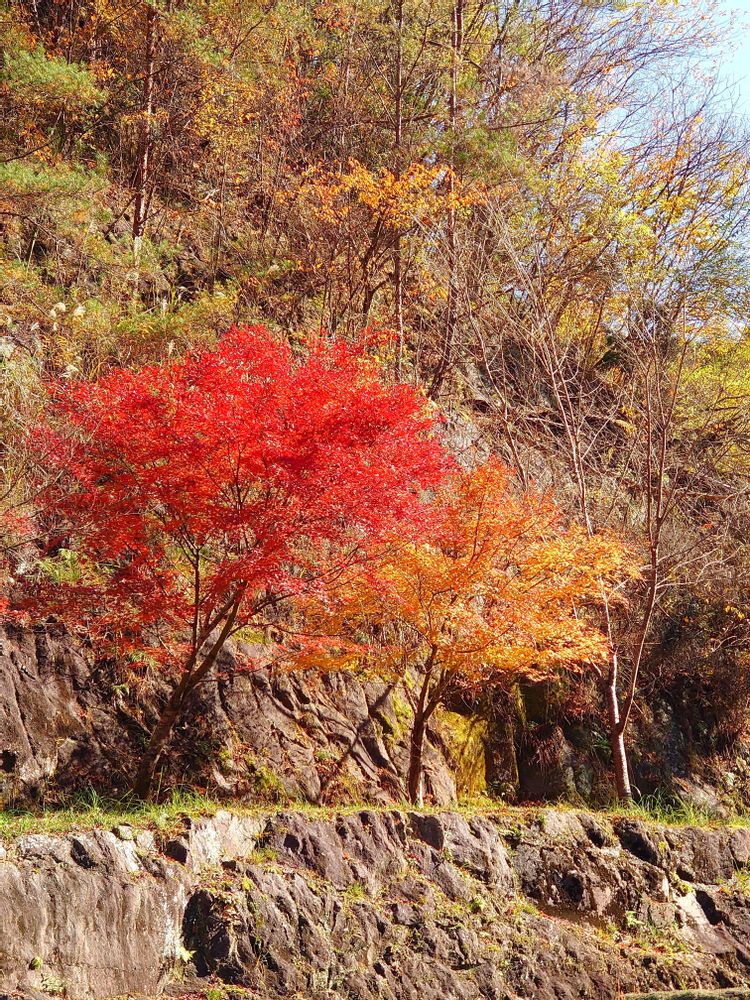 耶馬渓の紅葉は、白い岩肌とマッチして素敵ですよね😀