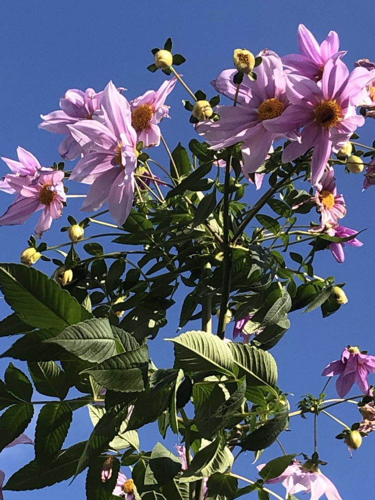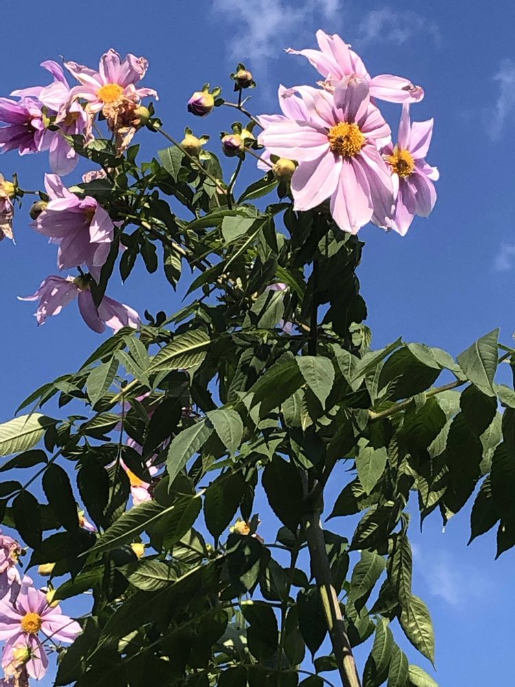とても背が高いですが、中にはくたびれた皇帝ダリアさん🌸もおられます。😢🌞✌️