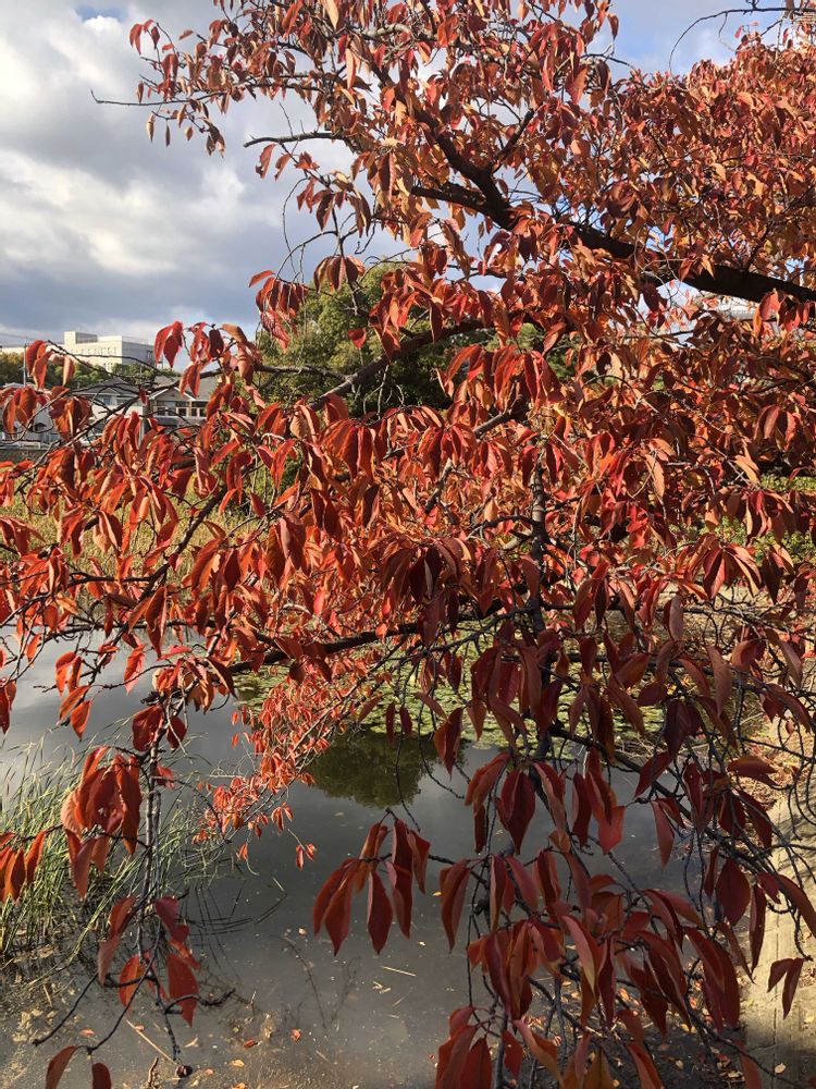 近くのハス池にて紅葉した「サクラ」、近くのスーパーにて紅葉した「モミジ」を夫々パチリ!📸🍁😊😄🌇✌️
