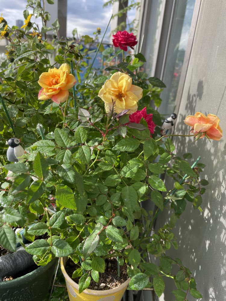 強風のベランダで、バラは負けない‼️嬉しくってバラ鉢だらけになっちゃいました💕品種不明のバラばかりなので鉢に名前をつけてます✌️ 2020年4月からバラ生活が始まり、GSは5月末から参加しました。みなさんからいろんな植物の話が見聞き&おしゃべりできてとっても楽しいです。ありがとぉです💕どうぞよろしくです。