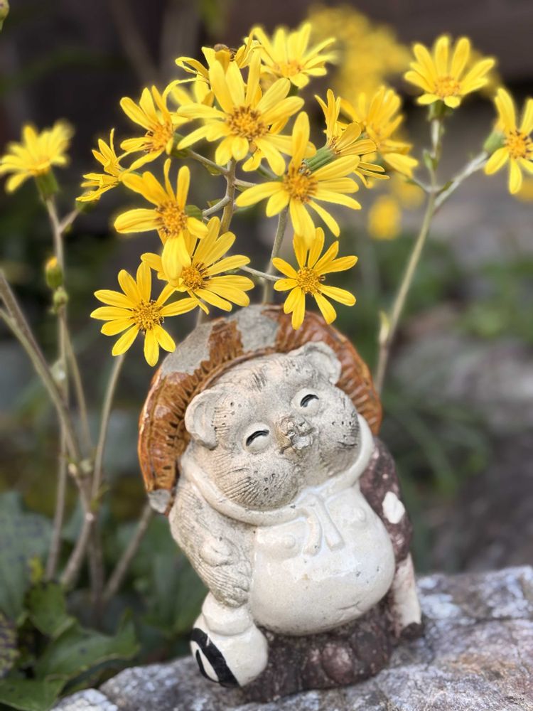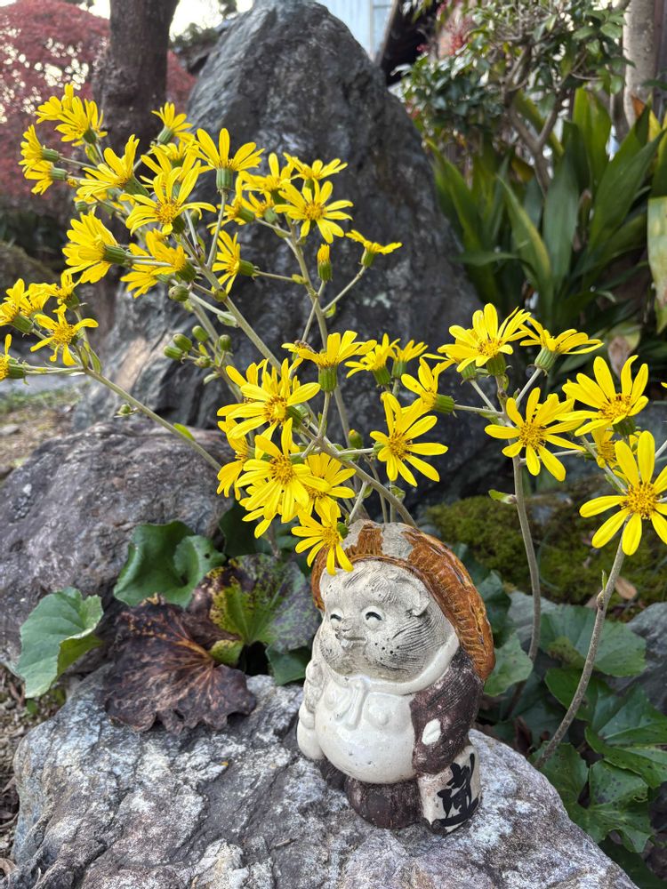 りっべさんの庭,ツワブキ,たぬきの置物の投稿画像