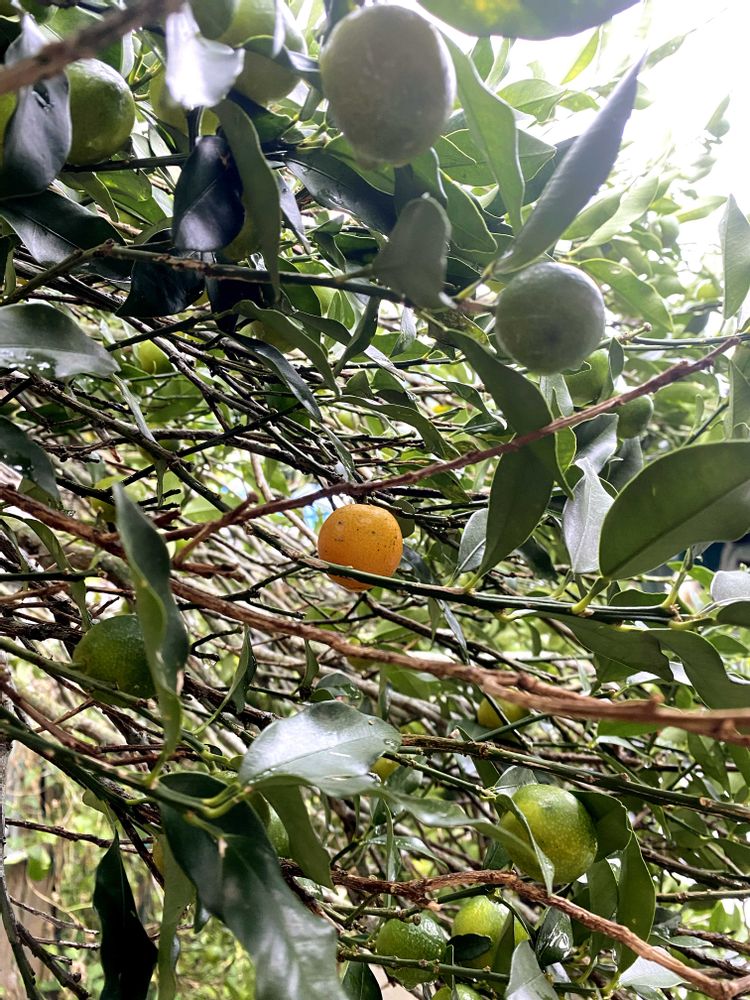 今年もキンカンが実りはじめました😲なんと!一粒だけ完熟✨独走してます ww