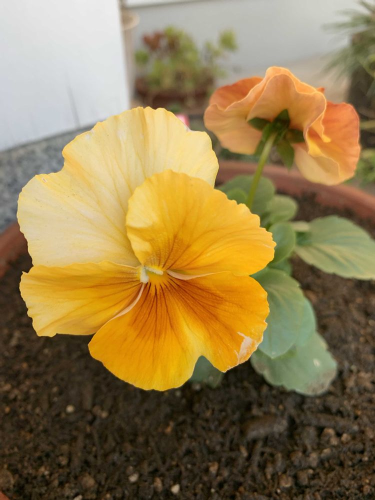 変わった色合いユニークカラーのパンジー2つ買いました。この時期の定番 来年の春まで寒さに耐えて咲いてくれるかな❓