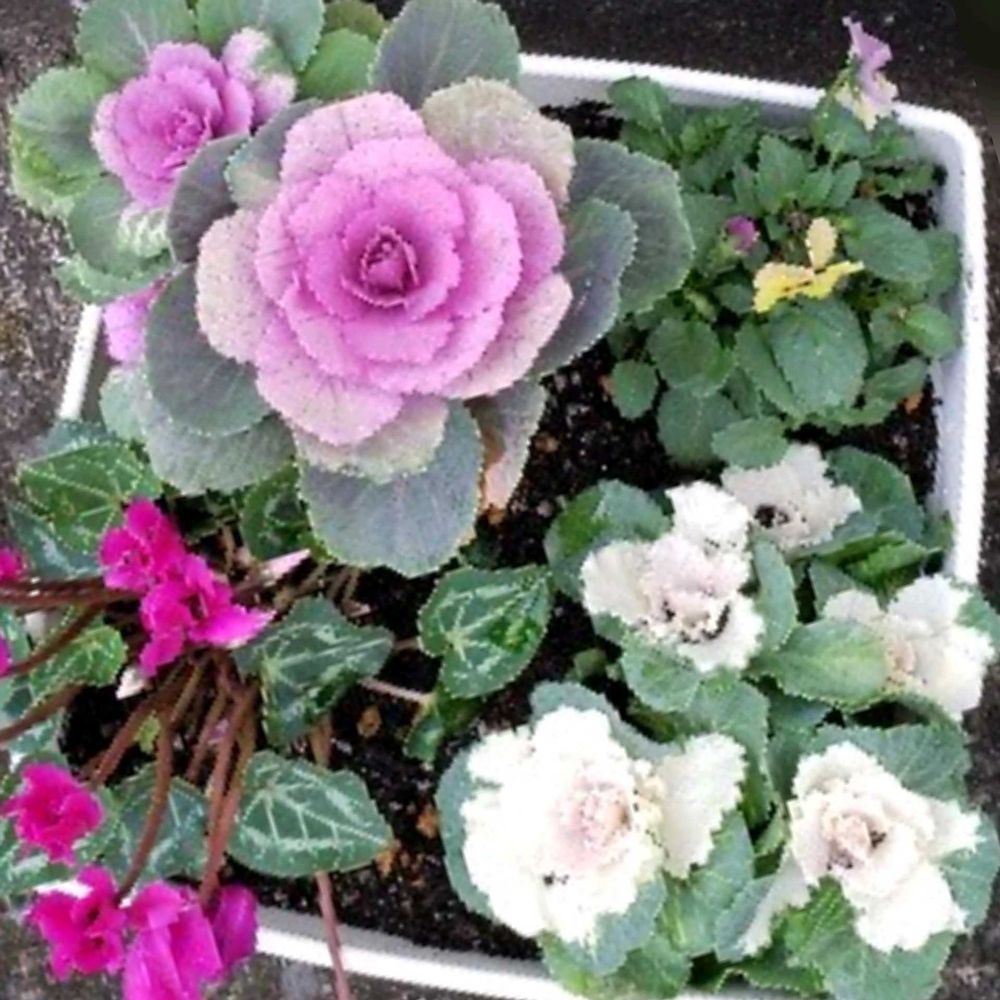 葉牡丹をメインに寄せ植えしてみました😹