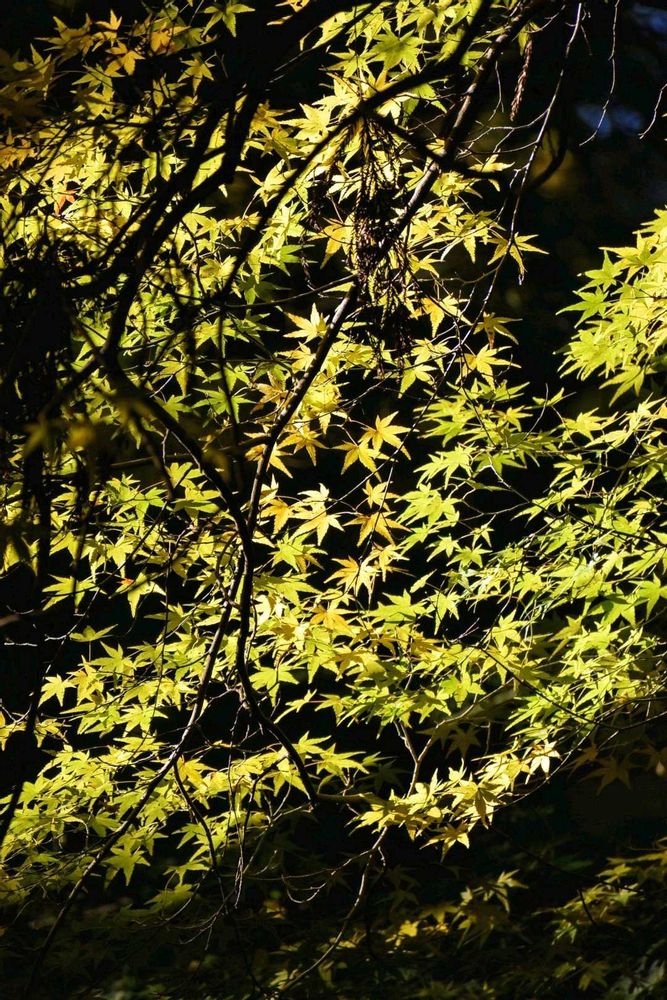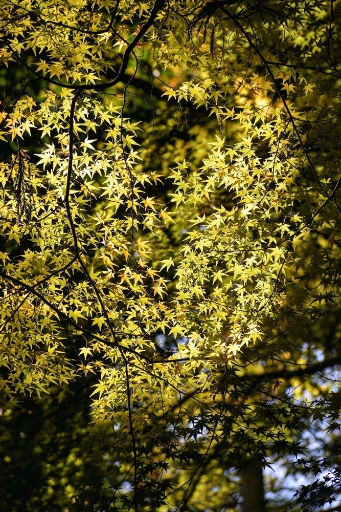 木漏れ日の紅葉 黄緑色のもみじがとっても素敵ですね~✨