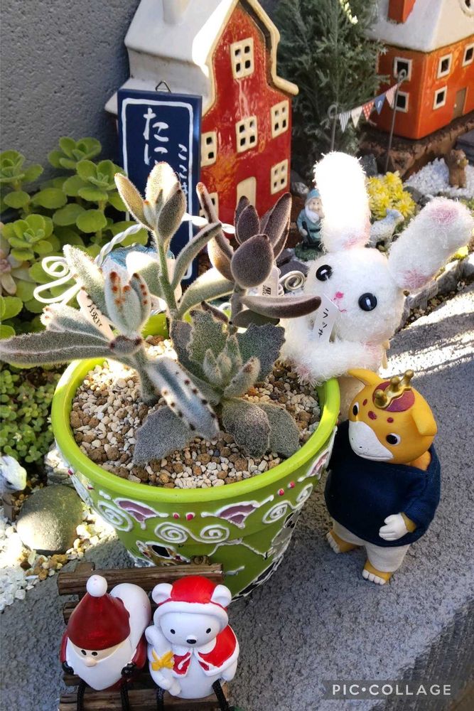 寒さ対策の為、寄せ植えにした、月兎耳さんたち。