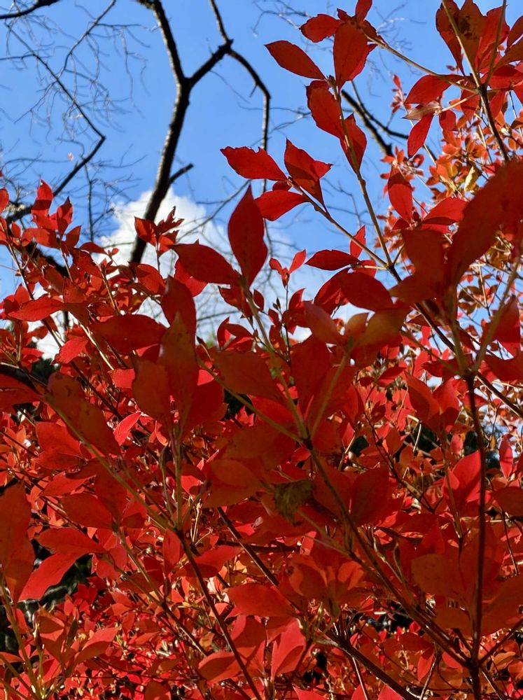 毎年、モミジやドウダンツツジが真っ赤に紅葉します😊