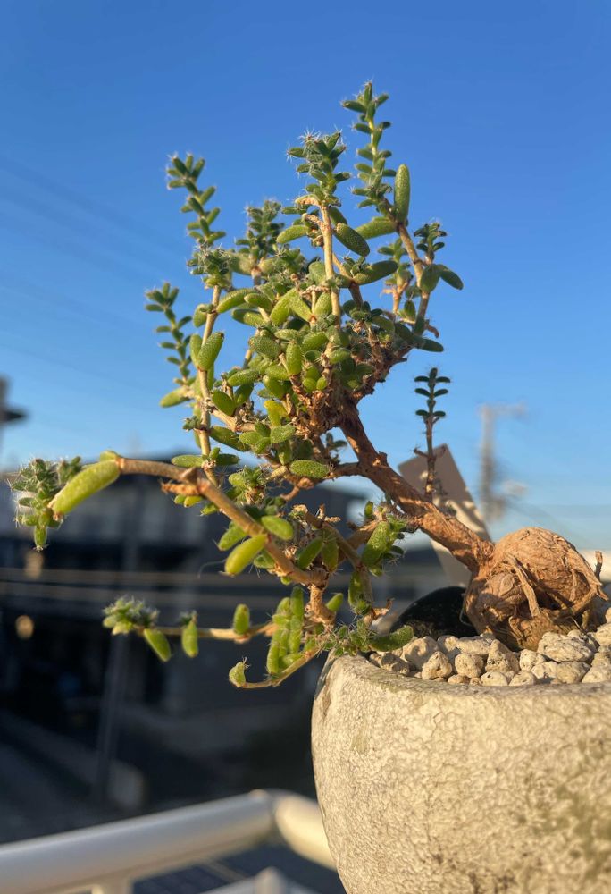 どないなもんかな…と ネット調べによると塊根部分は根っこなので霧吹きをマメに…ということで 霧吹きをもっとやって葉水もマメにやってたら