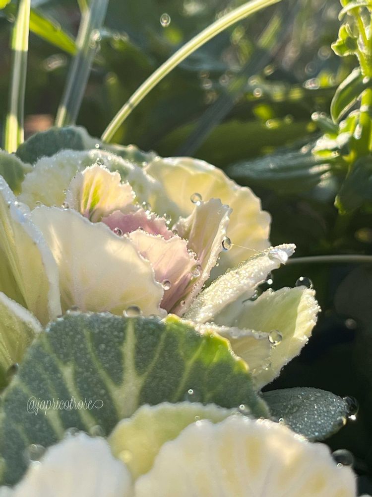 雫をまとったハボタンもなんとなく暖かそうに見えます😊