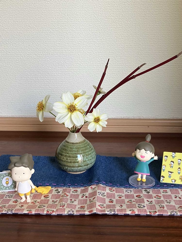 ウインターコスモスの花がらを整理して、朝から花を活けていました