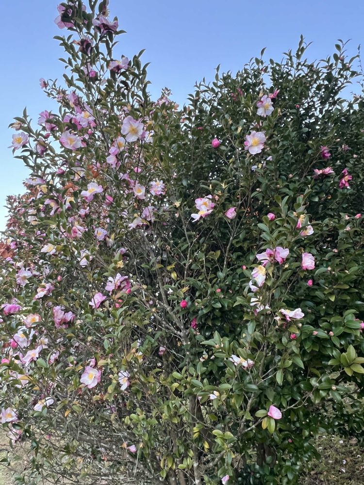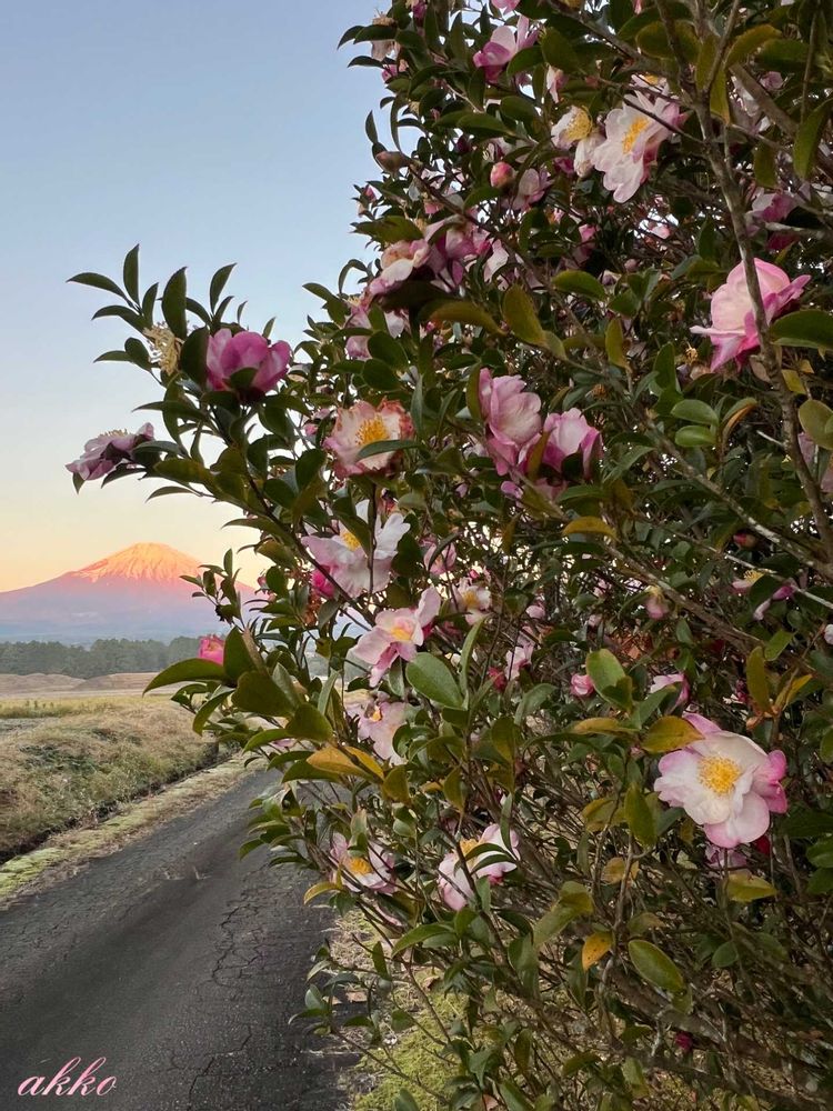 山茶花の向こうに赤いお顔が可愛らしい富士山が素敵ね♡
