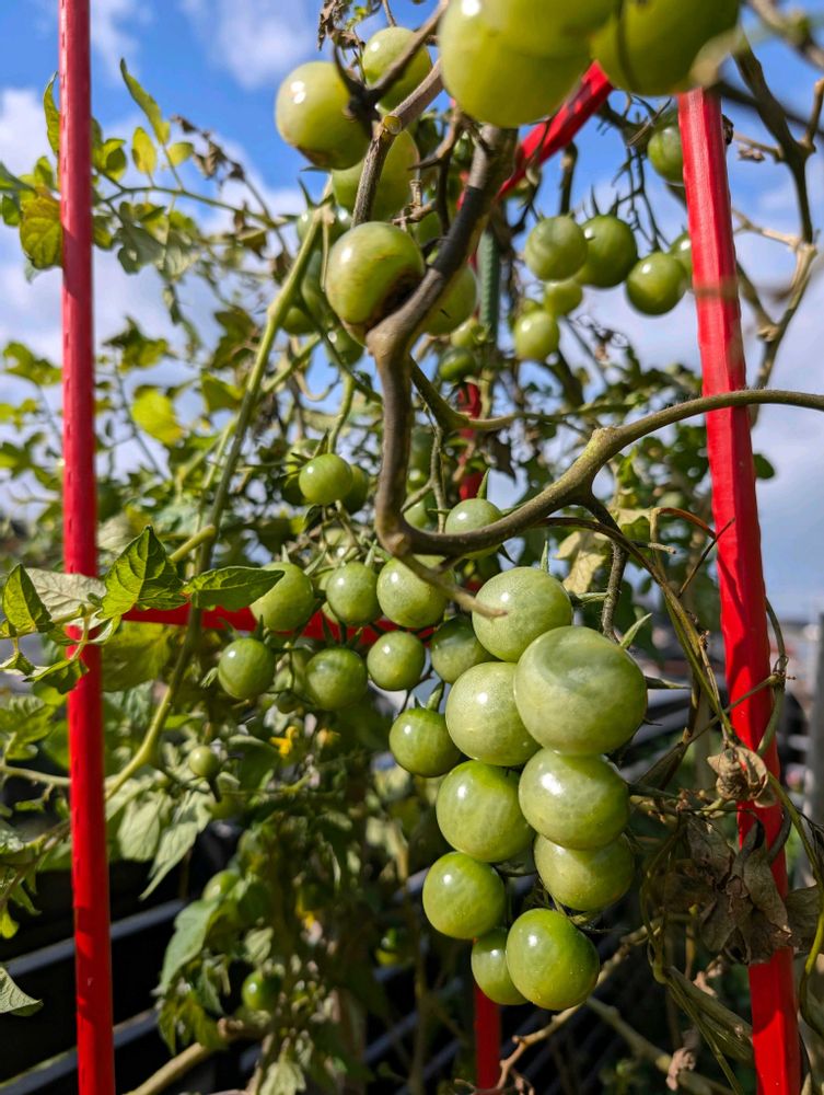 ①ミカン②直径5センチ位くらいの小さな小さな鈴なりミカン③わが家の鈴なり青トマト④公園のトベラ⑤そら散歩