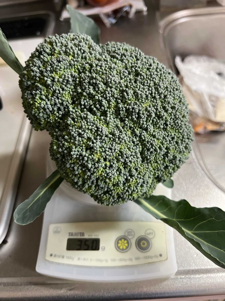 ブロッコリーの頂花蕾、そろそろ収穫しようと思います。側花蕾を切らないように包丁でそーっと、そーっと…。