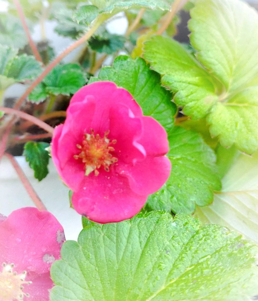 四季成りいちごルビーアンはずーっとお花つけてて、実も小さいのが成る🍓