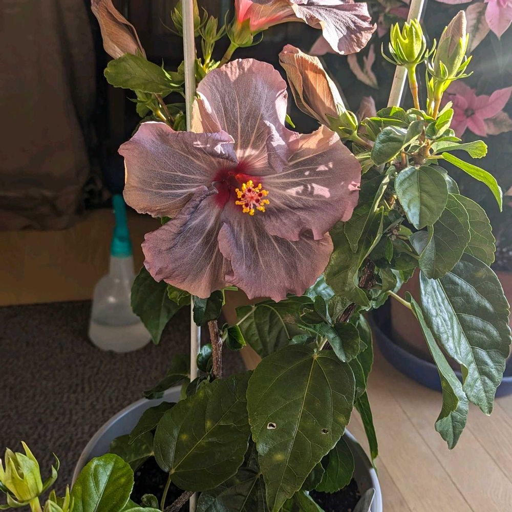 リビング窓辺,ハイビスカス「ケイト」,庭にやって来る雀さんの投稿画像