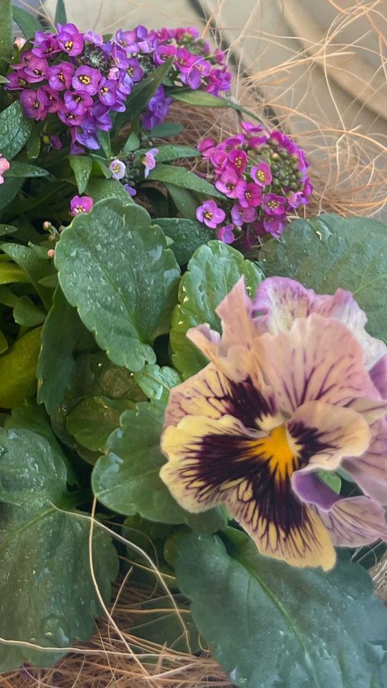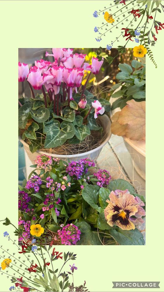 1️⃣2️⃣3️⃣ガーデンシクラメンは単独で、無名のフリルパンジーは前に買っておいたアリッサムと2種の寄せ植えにしてみました💝