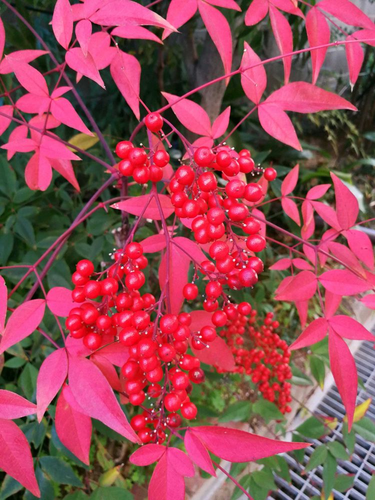 この南天、建物の日陰にあるんですけど、綺麗に色付いてますよね✨