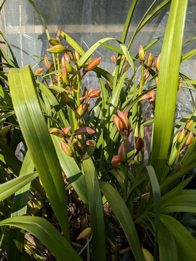 早咲きシンビジウムに花芽が沢山!!もうスグだね〜