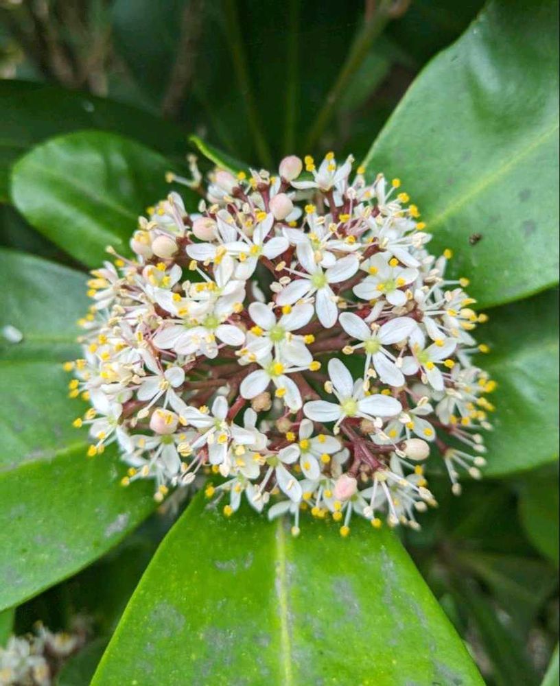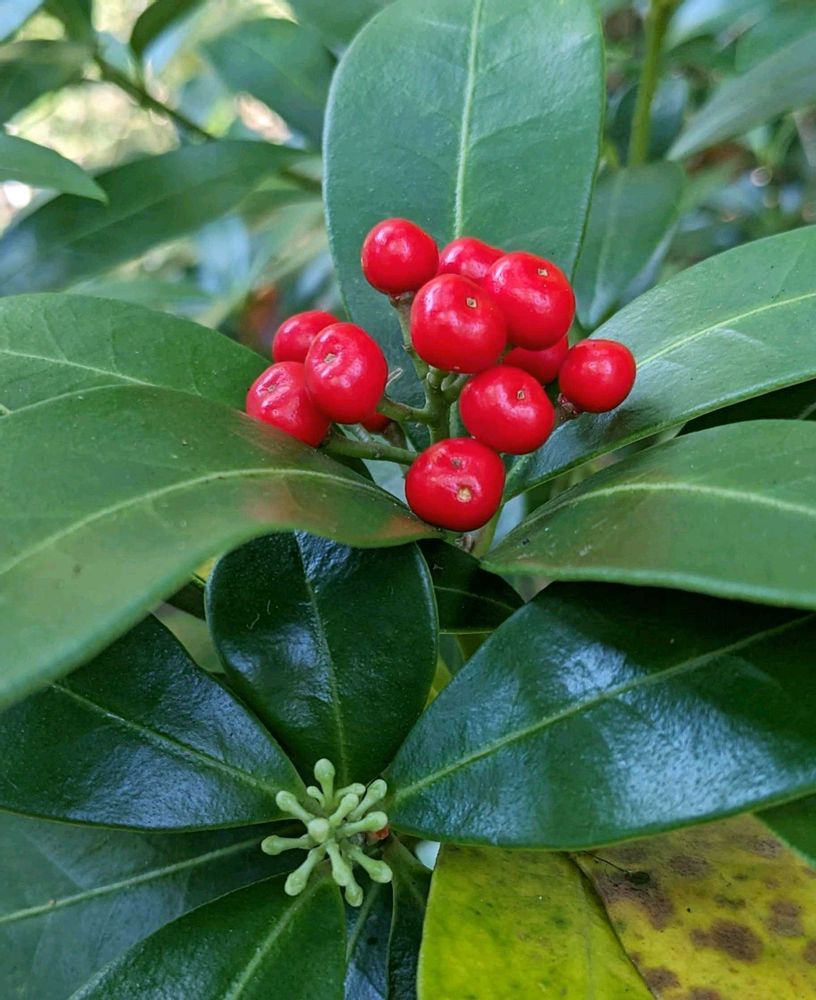 ミヤマシキミがヨーロッパに渡って品種改良されたものがスキミアでスキミアという名前もミヤマシキミから付けられたのだそう💡