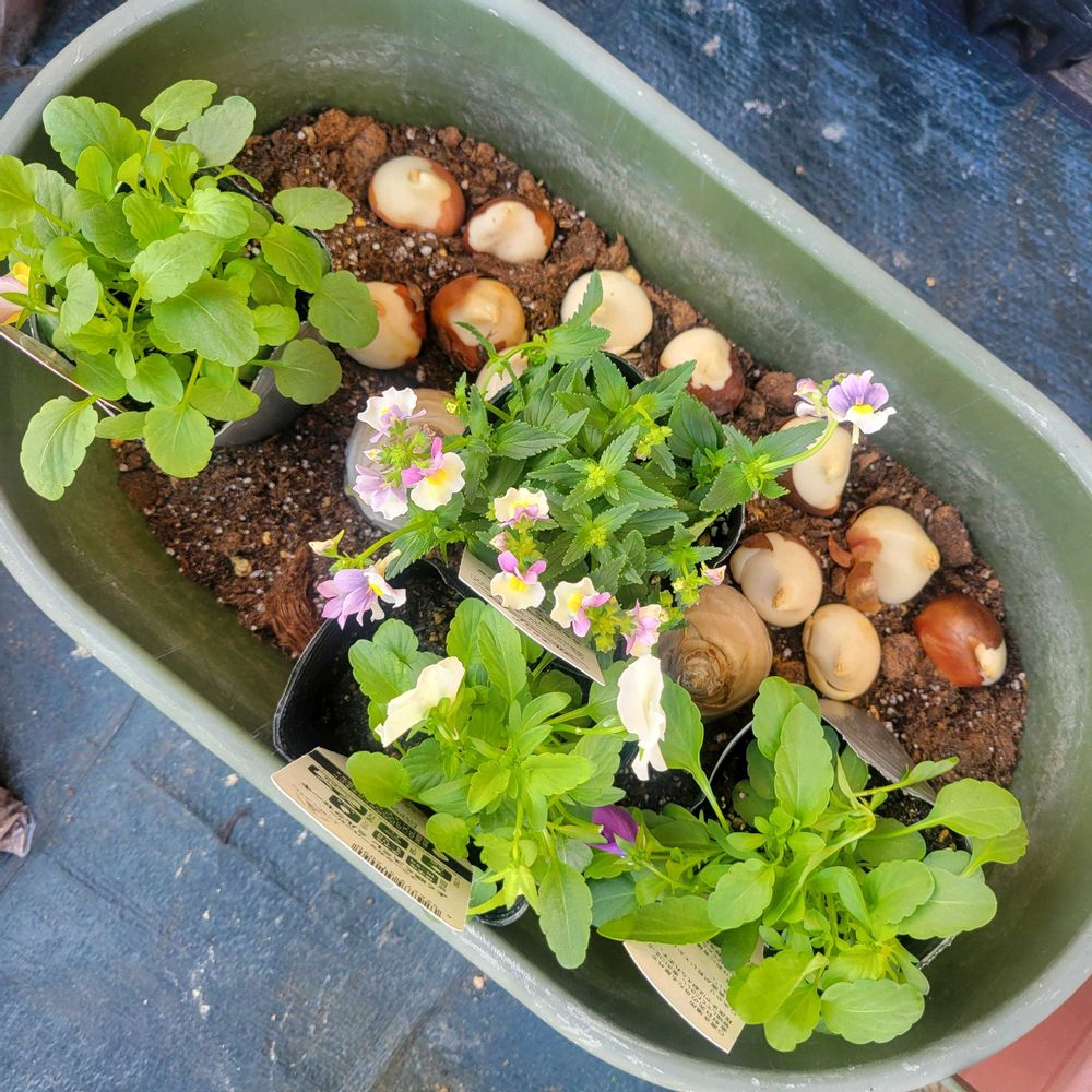 春が楽しみな寄せ植え の今季バージョンです🌷