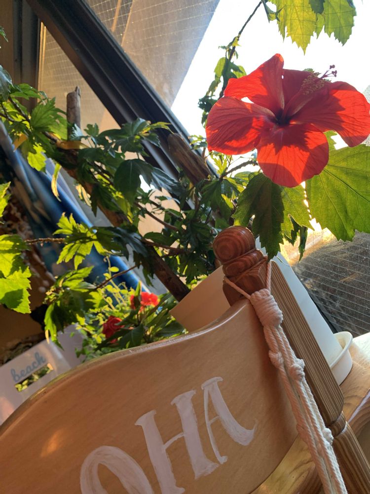 ゆうちゃん おはよう〜ハイビスカス🌺かまだ咲いて居るんですね╰(*´︶`*)╯♡